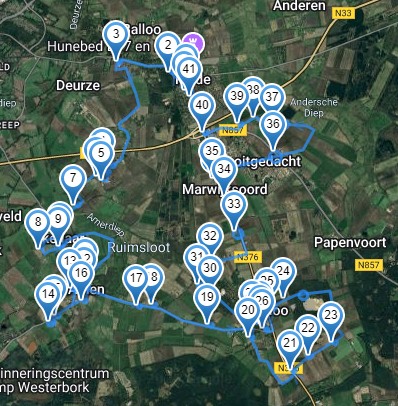 De route is ongeveer 40 km. Een prachtige route langs mooie verlichte boerderijen, bedrijven & woningen. De route neemt je mee door dorpen Rolde, Nijlande, Eldersloo, Ekehaar, Amen, Grolloo, Vredeheim, Marwijksoord & Nooitgedacht.